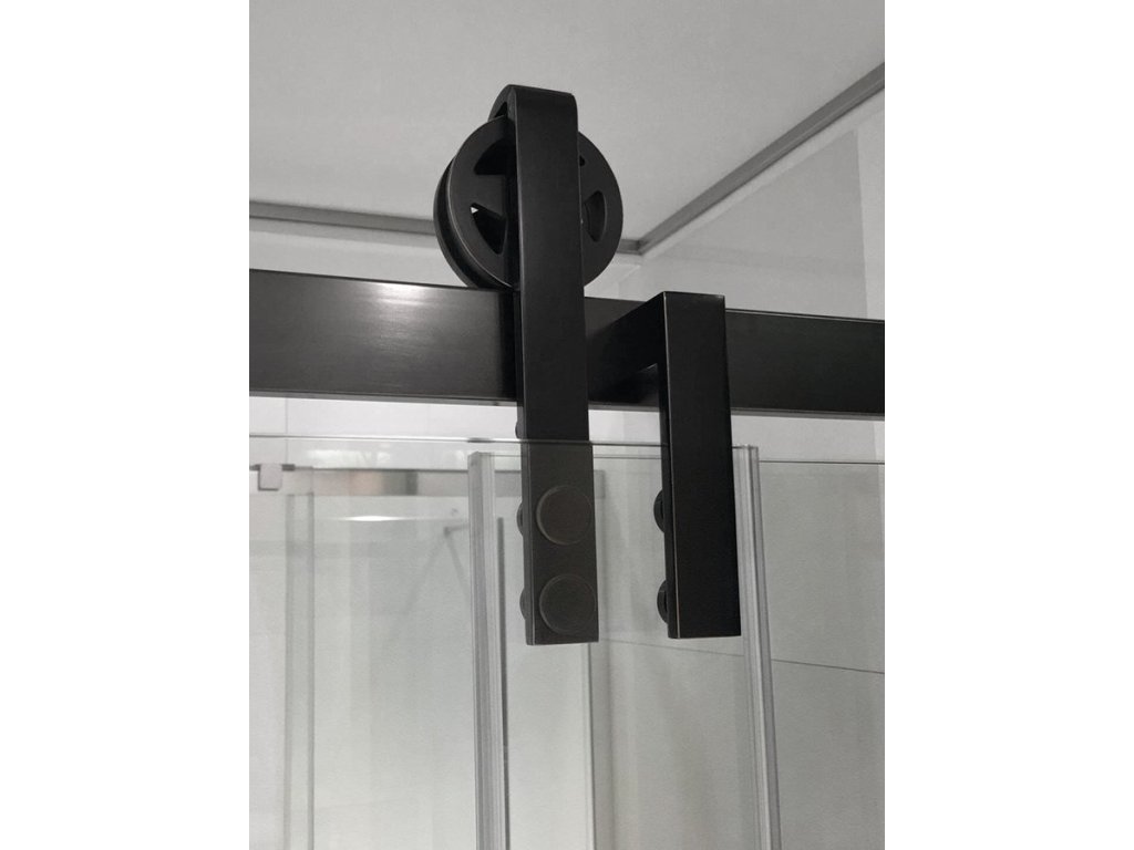 - Sklo dverí je voľne zavesené bez spodného vodiaceho profilu