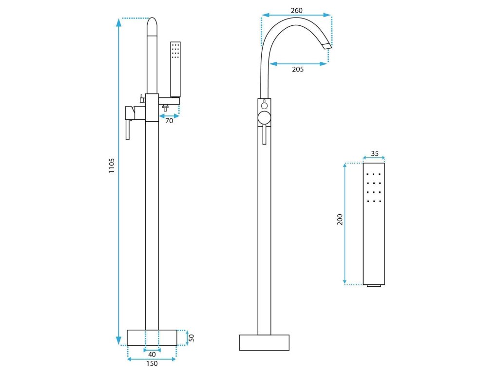 Voľne stojaca batéria vyrobená predovšetkým s mimoriadnou starostlivosťou o vzhľad a vysokú funkčnosť, je alternatívou ku klasickým kúpeľňovým batériám. Vďaka špeciálnej fáze výroby je odolná a ľahko sa čistí.Dodatočné parametre