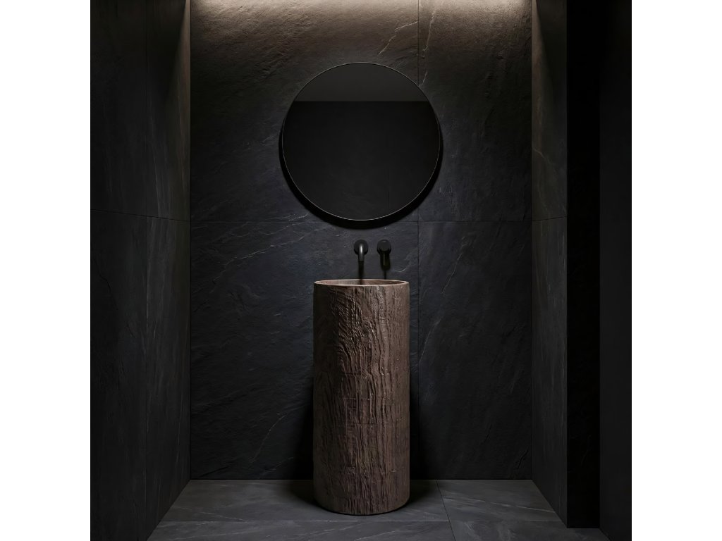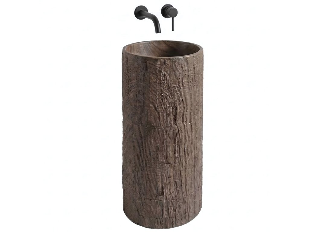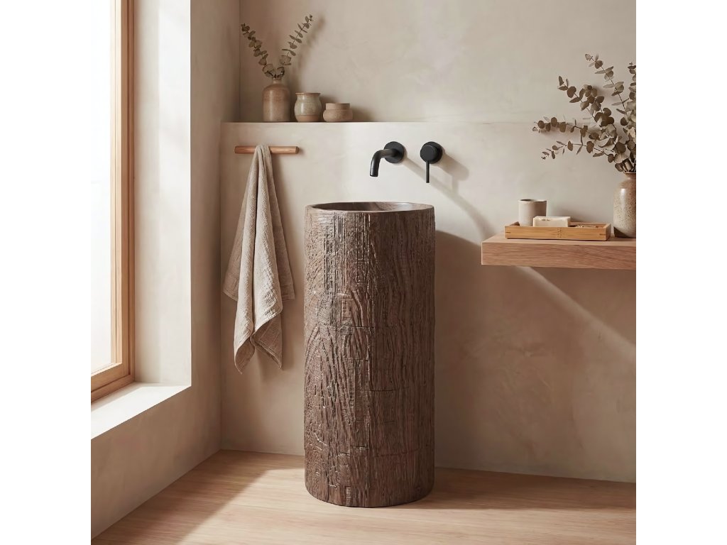 Vyberte si voľne stojace umývadlo Rea, ktoré je pôsobivým spojením surového dizajnu a modernej technológie. Tento monolitický model z odolného kompozitu Artificial Stone vyniká jedinečnou textúrou imitujúcou prirodzený kmeň stromu. Do kúpeľne prinesie organickú atmosféru a zároveň zachová plnú odolnosť a funkčnosť syntetických materiálov.Materiál Artificial Stone – kvalitný umelý kameň (kompozit) s výnimočnou trvácnosťou, odolnosťou voči mechanickému poškodeniu a dokonale hladkým vnútorným povrchom.Imitácia prírodného dreva – vonkajšia štruktúra verne napodobňuje textúru kôry a kresbu dreva, čím dodáva umývadlu neopakovateľný rustikálny vzhľad.Voľne stojaca konštrukcia – jednoliaty celok montovaný priamo na podlahu tvorí výrazný centrálny prvok kúpeľne.Revízny otvor – na zadnej strane stĺpu sa nachádza praktický otvor, ktorý umožňuje bezproblémovú montáž sifónu a uľahčuje servisný prístup k inštalácii.Odolnosť voči vlhkosti – na rozdiel od pravého dreva je kompozit úplne odolný voči vode a vlhkosti, takže si zachová bezchybný vzhľad po dlhé roky.Voľne stojace umývadlo Rea je ideálnou voľbou pre milovníkov štýlu eco, loft a spa – praktická a dizajnová úžitková „socha“ do vašej kúpeľne.