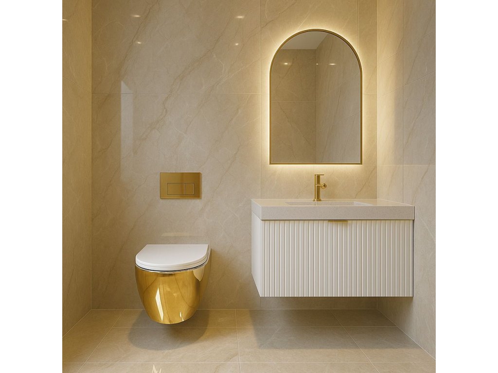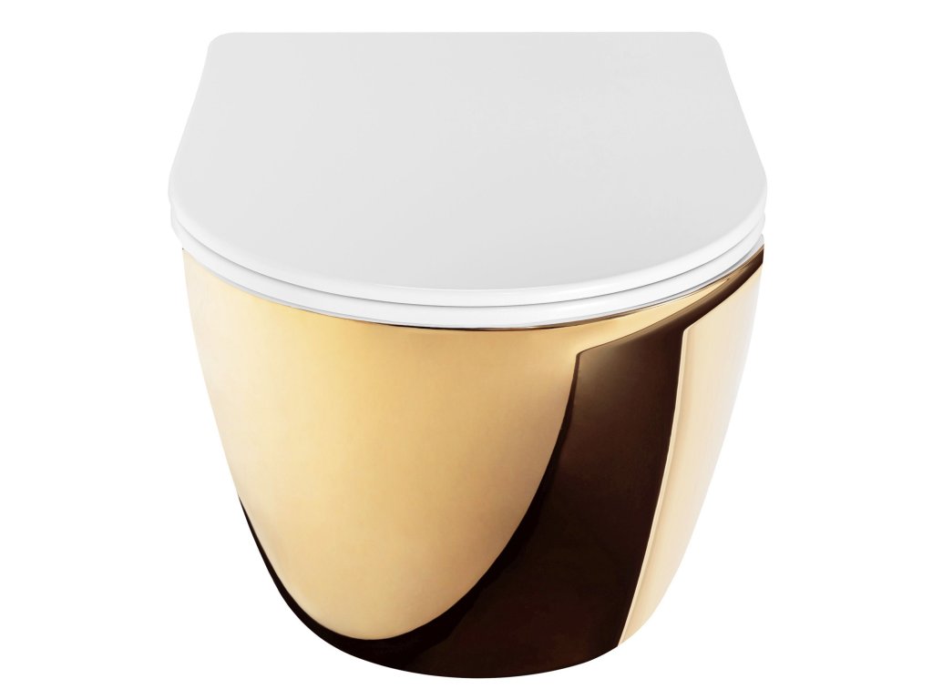 Bezrámová závesná WC misa, biela so zlatým okrajom a inovatívnym splachovacím systémom Tornado je moderným riešením, ktoré spája eleganciu, jednoduché čistenie a účinnosť splachovania. Bezrámový dizajn dodáva nielen moderný nádych, ale tiež uľahčuje udržiavanie okolia misy v čistote. Tornado System: Vďaka pokročilému splachovaciemu systému Tornado voda krúživým pohybom steká dole a efektívne tak opláchne celý povrch misy. To zaisťuje nielen dôkladné opláchnutie, ale zároveň minimalizuje usadzovanie nečistôt, čo prispieva k hygiene. Misa je vhodná pre väčšinu podomietkových rámov Geberit, Grohe, Sanit, Rea.