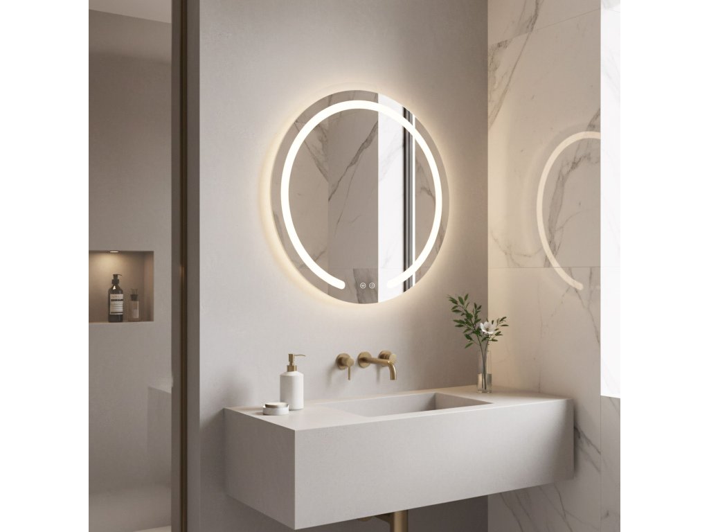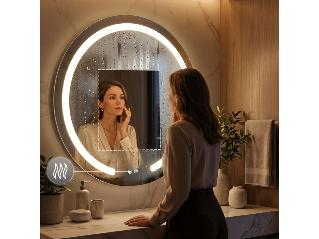 Okrúhle kúpeľňové zrkadlo zo série Modern značky Rea je štýlovým a funkčným doplnkom modernej kúpeľne. Tento model vyniká unikátnym dizajnom s charakteristickým mliečnym LED rámom, ktorý je v spodnej časti prerušený, čo dodáva tvaru vizuálnu ľahkosť a moderný charakter.LED osvetlenie s reguláciou – zrkadlo ponúka plnú kontrolu nad svetlom. Môžete si vybrať jednu z troch farieb svetla: teplú, neutrálnu alebo studenú. Navyše, vstavaná funkcia stmievania umožňuje plynulé nastavenie jasu – stačí podržať tlačidlo na skle a prispôsobiť intenzitu vlastným potrebám.Systém Anti-Fog (vyhrievacia podložka) – koniec zahmlenému zrkadlu po horúcej sprche. Vstavané vyhrievanie účinne zabraňuje usadzovaniu pary na skle a zabezpečuje vždy jasný odraz bez potreby utierania.Pohodlné dotykové ovládanie – na ploche zrkadla sú umiestnené dve prehľadné podsvietené tlačidlá. Umožňujú nezávislé a rýchle zapnutie osvetlenia aj aktiváciu vyhrievacej podložky.Zástrčka do zásuvky – produkt je pripravený na rýchle pripojenie. Má z výroby namontovaný biely kábel s dĺžkou 115 cm, zakončený štandardnou zástrčkou, takže zrkadlo môžete bez problémov zapojiť priamo do zásuvky.Zrkadlo zo série Modern je skvelou voľbou pre tých, ktorí si cenia dizajn a komfort. Kombinácia funkcie Anti-Fog, nastaviteľného svetla a minimalistickej formy robí každodenné používanie kúpeľne výnimočne príjemným.Dodatočné parametre