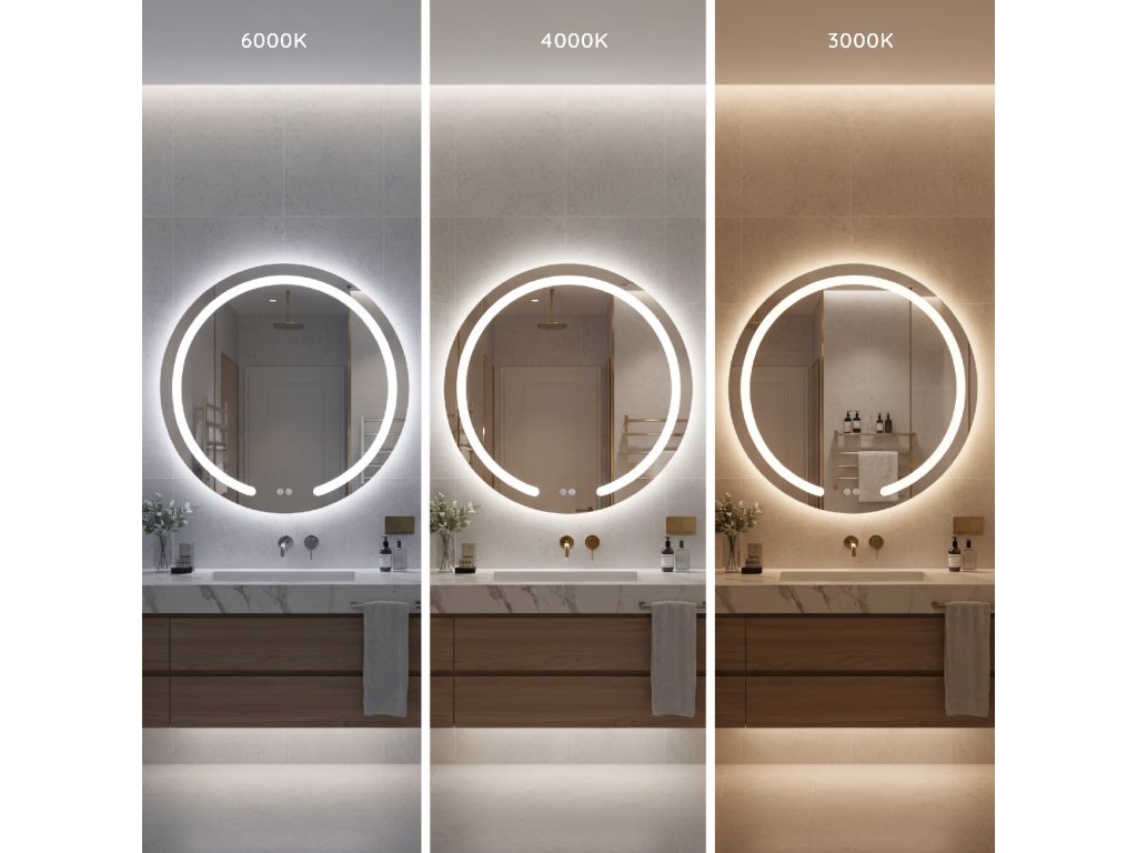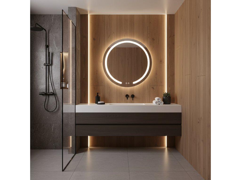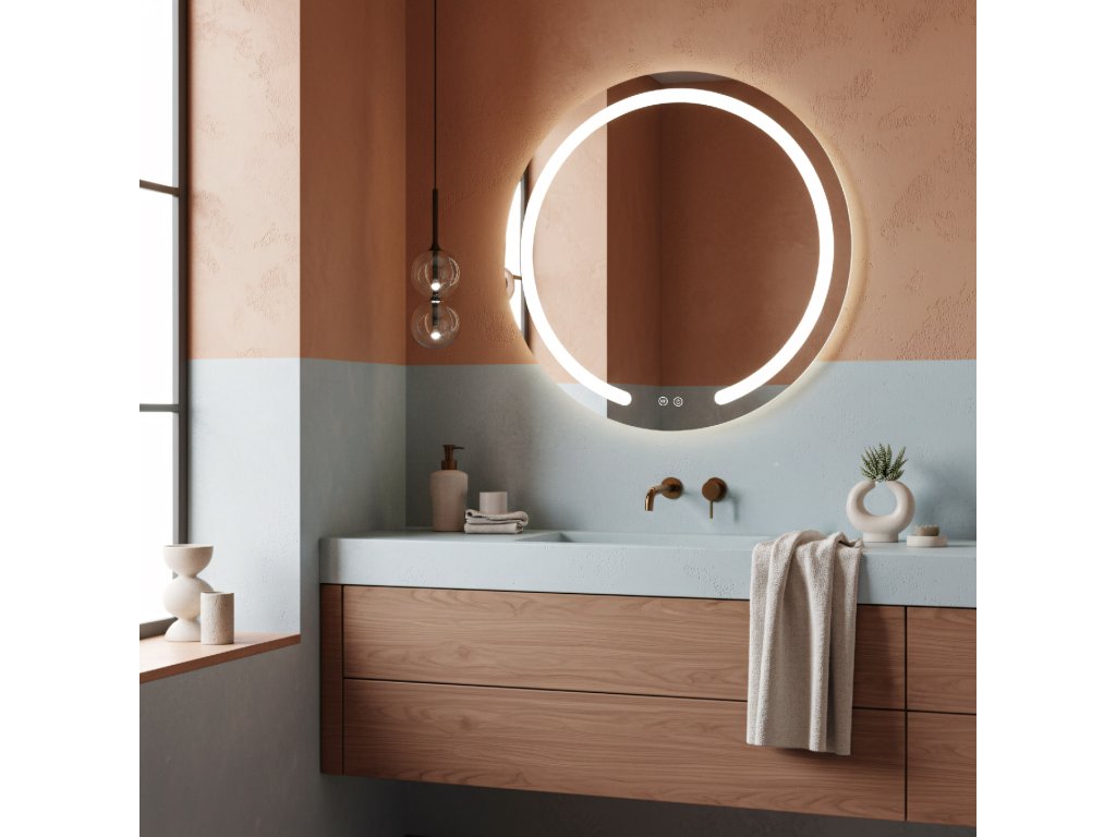 Okrúhle kúpeľňové zrkadlo zo série Modern značky Rea je štýlovým a funkčným doplnkom modernej kúpeľne. Tento model vyniká unikátnym dizajnom s charakteristickým mliečnym LED rámom, ktorý je v spodnej časti prerušený, čo dodáva tvaru vizuálnu ľahkosť a moderný charakter.LED osvetlenie s reguláciou – zrkadlo ponúka plnú kontrolu nad svetlom. Môžete si vybrať jednu z troch farieb svetla: teplú, neutrálnu alebo studenú. Navyše, vstavaná funkcia stmievania umožňuje plynulé nastavenie jasu – stačí podržať tlačidlo na skle a prispôsobiť intenzitu vlastným potrebám.Systém Anti-Fog (vyhrievacia podložka) – koniec zahmlenému zrkadlu po horúcej sprche. Vstavané vyhrievanie účinne zabraňuje usadzovaniu pary na skle a zabezpečuje vždy jasný odraz bez potreby utierania.Pohodlné dotykové ovládanie – na ploche zrkadla sú umiestnené dve prehľadné podsvietené tlačidlá. Umožňujú nezávislé a rýchle zapnutie osvetlenia aj aktiváciu vyhrievacej podložky.Zástrčka do zásuvky – produkt je pripravený na rýchle pripojenie. Má z výroby namontovaný biely kábel s dĺžkou 115 cm, zakončený štandardnou zástrčkou, takže zrkadlo môžete bez problémov zapojiť priamo do zásuvky.Zrkadlo zo série Modern je skvelou voľbou pre tých, ktorí si cenia dizajn a komfort. Kombinácia funkcie Anti-Fog, nastaviteľného svetla a minimalistickej formy robí každodenné používanie kúpeľne výnimočne príjemným.Dodatočné parametre
