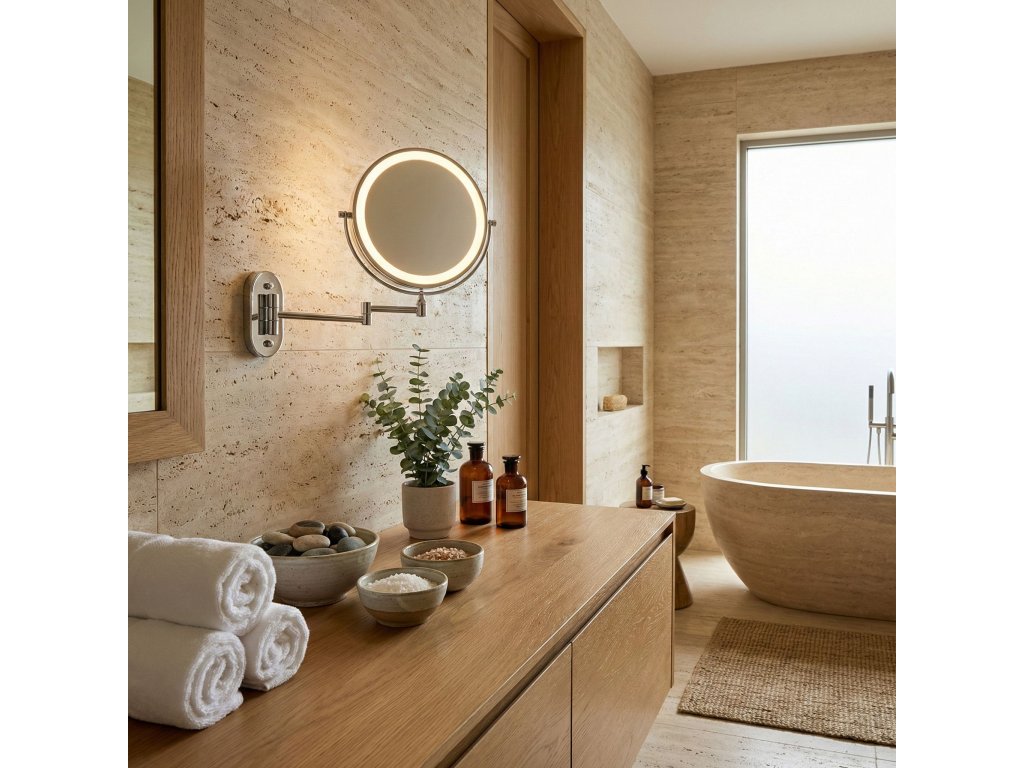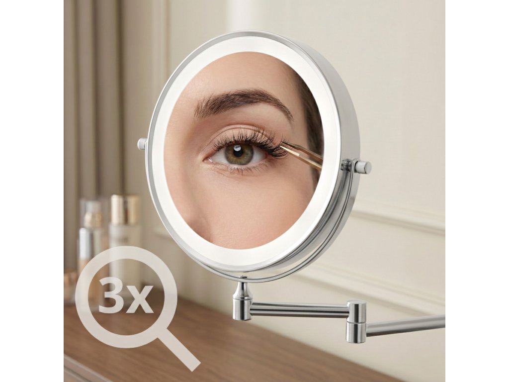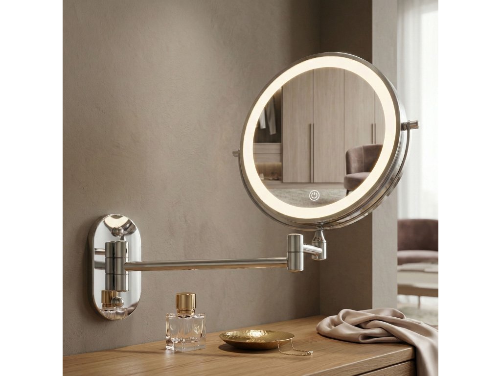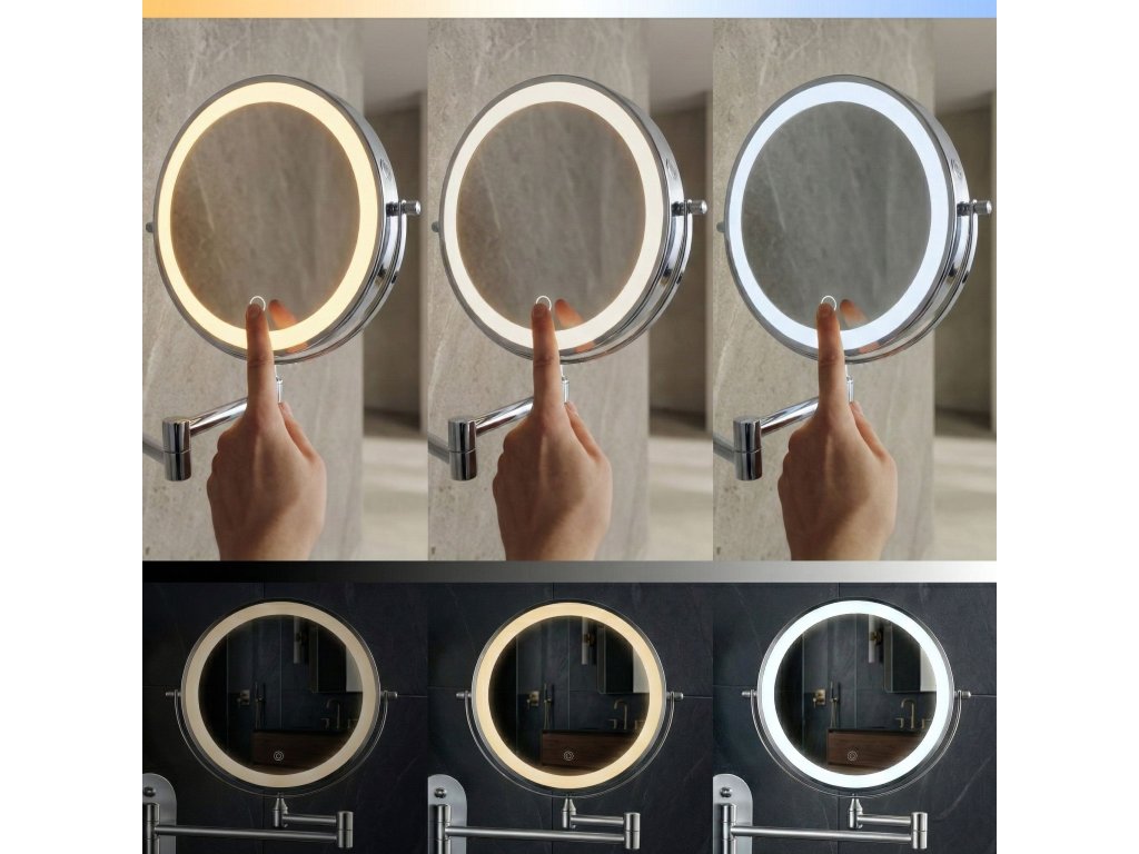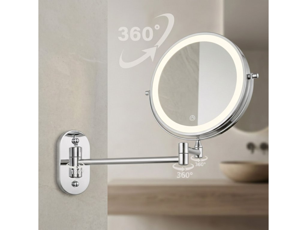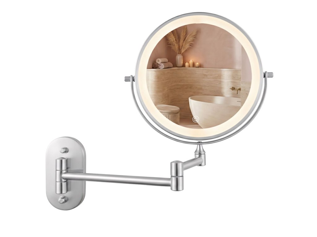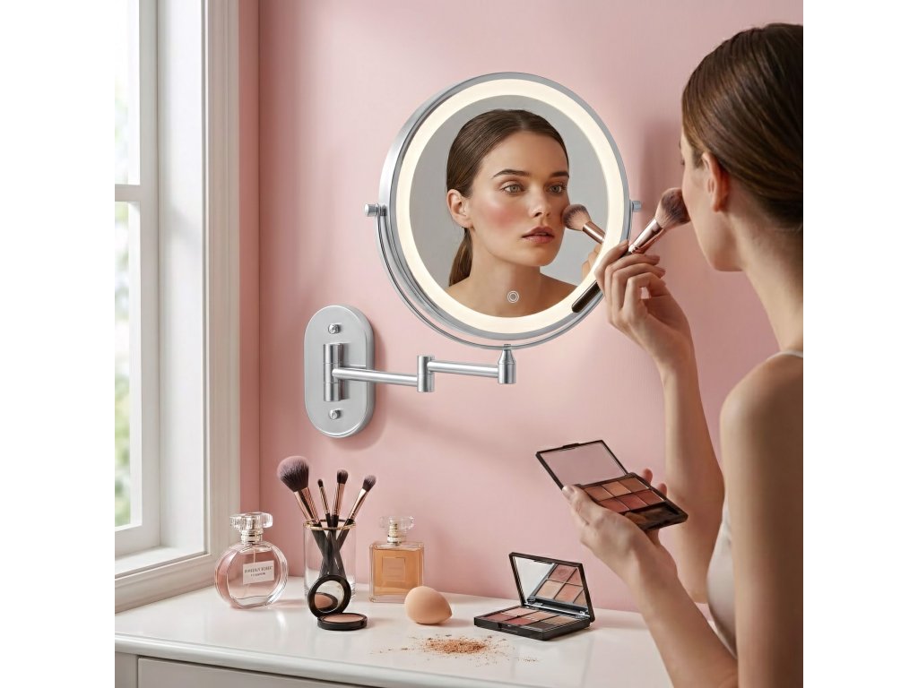 Nástenné kozmetické LED zrkadlo je praktické a elegantné riešenie ideálne do kúpeľne, šatníka alebo k domácemu toaletnému stolíku. Tento obojstranný model na sklopnom ramene je neoceniteľnou pomocou pri líčení, holení a presnej starostlivosti, spájajúc moderný dizajn s vysokou funkčnosťou.Obojstranná plocha (zväčšenie 3×) – jedna strana poskytuje štandardný odraz, druhá trojnásobné zväčšenie. Otočný kotúč o 360° umožňuje rýchlu zmenu strany.LED osvetlenie s reguláciou – integrovaný svetelný rám ponúka tri farby svetla: teplú, neutrálnu a studenú. Dotykové tlačidlo umožňuje plynulé stmievanie a zosvetľovanie.Pohodlné USB nabíjanie – vstavaný akumulátor sa ľahko nabíja pomocou priloženého kábla USB Type-C. Osvetlenie funguje bezdrôtovo, bez trvalo visiaceho kábla.Kĺbové rameno – pevná konštrukcia umožňuje zrkadlo približovať, odďaľovať a skladať naplocho k stene. Kĺby poskytujú voľnosť nastavenia ideálneho uhla.Oceľová konštrukcia – odolná oceľ zaručuje stabilitu pri používaní a estetická povrchová úprava dodáva moderný, elegantný vzhľad.Optimálna veľkosť – priemer 20 cm predstavuje ideálny kompromis medzi pohodlím a úsporou miesta.Moderné kozmetické zrkadlo na ramene citeľne zvyšuje komfort každodennej starostlivosti. Premyslená konštrukcia, výborné osvetlenie tváre a bezdrôtová prevádzka z neho robia pohodlnú a univerzálnnu voľbu do interiéru.Dodatočné parametre