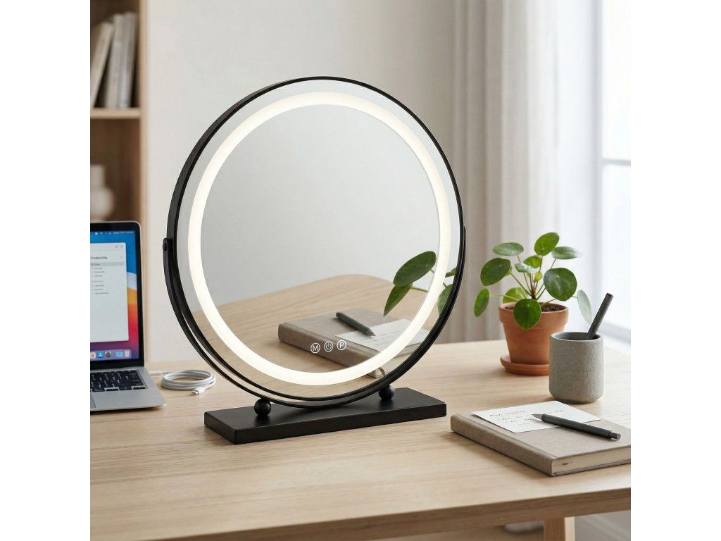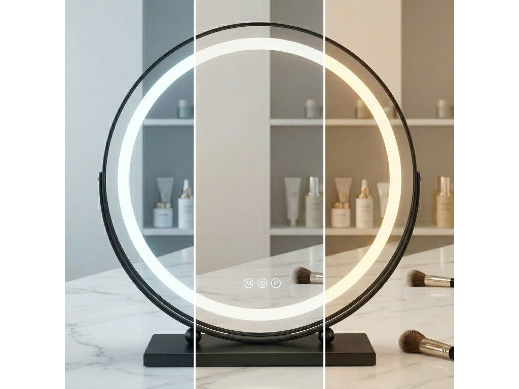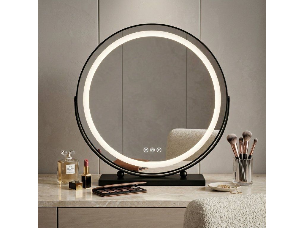 Oceňte profesionalitu a moderný dizajn vo svojom beauty kútiku vďaka kozmetickému LED zrkadlu Make-Up Black s priemerom 50 cm. Je to ideálne spojenie štýlu a funkčnosti, ktoré nadchne každého, kto hľadá perfektné osvetlenie na každodennú starostlivosť a líčenie. Zrkadlo vyrobené z najlepších materiálov v hlbokom čiernom prevedení nielen podčiarkne vzhľad vášho toaletného stolíka, ale zaistí aj spoľahlivosť a komfort používania každý deň.Pohyblivá konštrukcia plochy – možnosť slobodnej regulácie uhla sklonu na stabilnej nôžke umožňuje ideálne prispôsobiť polohu zrkadla vašim potrebám.Tri farby podsvietenia – výber medzi teplým, studeným a neutrálnym odtieňom umožňuje perfektné zladenie svetla s dennou dobou a typom vykonávaného líčenia.Funkcia stmievania a rozjasňovania – inteligentná regulácia intenzity jasu umožňuje vytvoriť optimálne podmienky pre prácu a zároveň chráni zrak pred únavou.Intuitívne dotykové ovládanie – tri diskrétne senzory umiestnené priamo v ploche skla zaisťujú okamžitú a jednoduchú obsluhu všetkých funkcií jedným dotykom.Špeciálny napájací adaptér v balení – stále sieťové napájanie zaručuje nemenný výkon svietenia LED diód bez nutnosti používať batérie.Elegantné čierne prevedenie – minimalistické puzdro a solídna základňa v matnej čiernej farbe zaisťujú, že zrkadlo dokonale zapadá do moderných a loftových interiérov. Kozmetické LED zrkadlo Make-Up Black je voľbou pre ľudí, ktorí si cenia luxus a moderný dizajn v pohodlí domova. Perfektné v každom detaile, vyrobené s dôrazom na kvalitu a estetiku, bude výraznou ozdobou vášho interiéru. Vďaka mobilnej konštrukcii a pokročilému systému osvetlenia si môžete byť istí, že každé líčenie prebehne v profesionálnych podmienkach.Dodatočné parametre