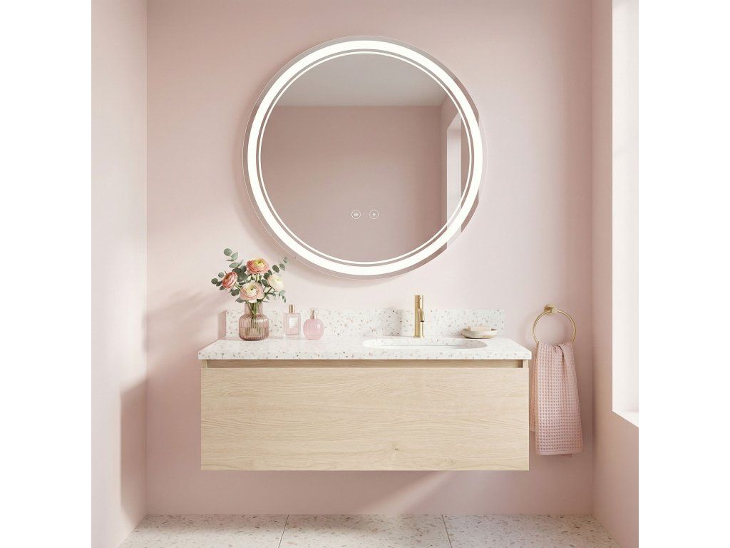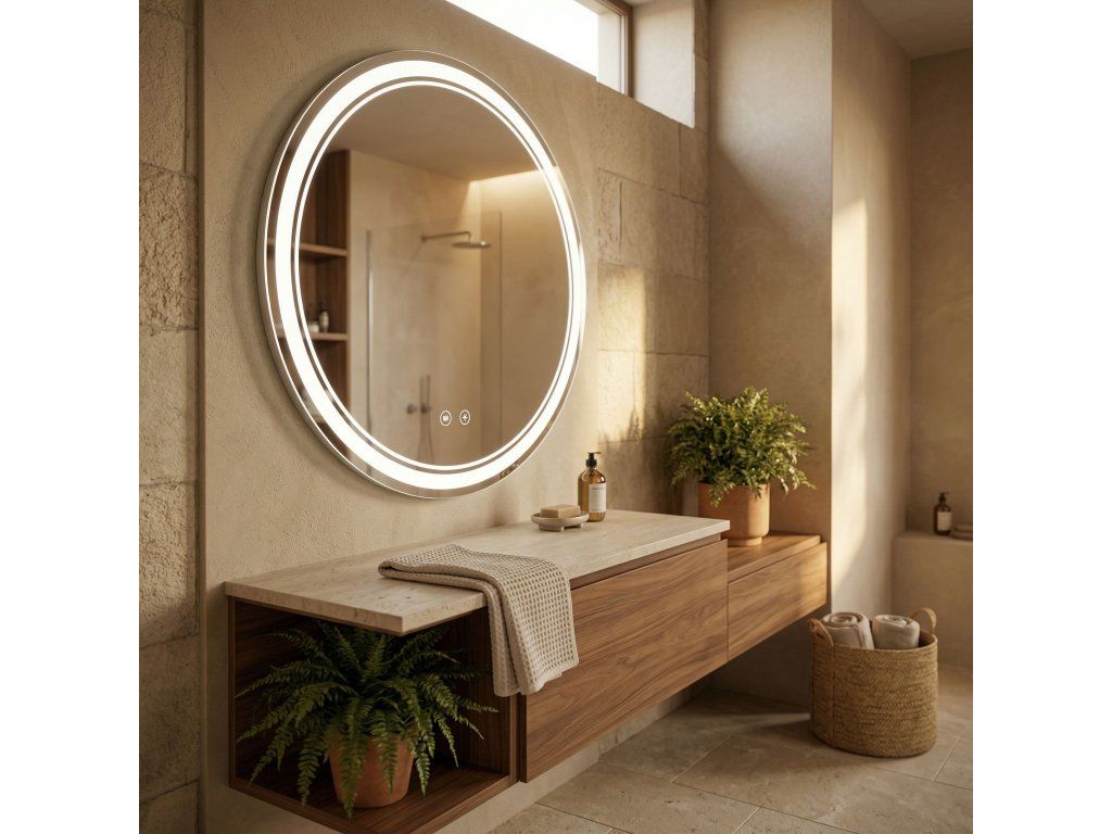Hľadáte spektakulárny akcent, ktorý dodá vášmu interiéru jemný jas a luxusný rozmach? Oceňte eleganciu a modernosť vo svojej kúpeľni vďaka okrúhlemu LED zrkadlu Soft 90 cm. Je to ideálne spojenie minimalistického štýlu a náladovej funkčnosti, vytvorené pre používateľov hľadajúcich dekoratívne riešenia prémiovej triedy. Imponujúci priemer 90 cm robí zo zrkadla hlavný bod aranžmánu, ktorý opticky zväčší aj veľké priestory.Dekoratívny dvojitý svetelný rám – unikátny dizajn s dvoma svetelnými obručami vytvára náladový vizuálny efekt a tvorí šperkový prvok vo vašej kúpeľni.Jemný výkon svietenia – osvetlenie navrhnuté s ohľadom na ozdobnú funkciu, ktoré jemne rozjasňuje plochu aj stenu a vytvára ideálnu klímu pre večernú relaxáciu.Intuitívny dotykový spínač – diskrétny senzor umiestnený v ploche skla umožňuje pohodlné ovládanie nálady jedným dotykom.Integrovaná vyhrievacia podložka (Anti-Fog) – zabraňuje zahmlievaniu zrkadla, čo zaručuje jasný odraz aj po dlhom, horúcom kúpeli.Monumentálna okrúhla forma – veľký priemer 90 cm dodáva interiéru prestížny charakter a dokonale vypĺňa priestor nad širokými umývadlovými skrinkami.Vysoká kvalita skla – precízne spracovanie a materiály odolné voči korózii zaručujú dlhú životnosť a nemenný vzhľad po mnoho rokov.Dodatočné parametre